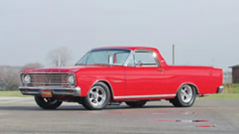 Beginning with a top-to-bottom restoration of the body and interior, the bottom of this Ranchero is just as nice as the top. The new drivetrain was custom built around a high-performance Ford small-block V-8 backed by a four-speed transmission. Featuring such parts as a complete MSD ignition system, headers with dual exhaust, single-plane aluminum intake with four-barrel carburetion all going back to a nine-inch Ford rearend, this vehicle has also been updated with four-wheel disc brakes featuring drilled rotors.