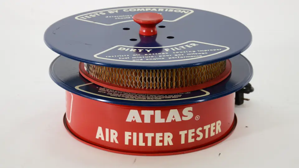 N.O.S. 1960's Atlas Air Filter Tester still in original box. Fine condition. 14"x14'x8