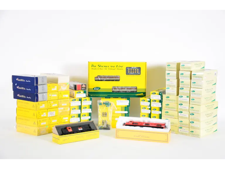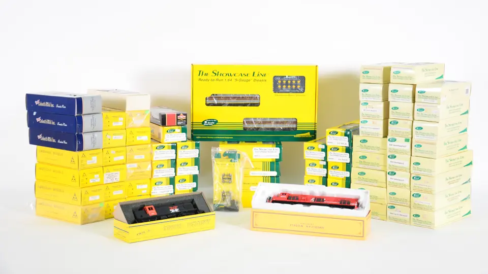 A large quantity of “Showcase Line” S scale model railroad cars.