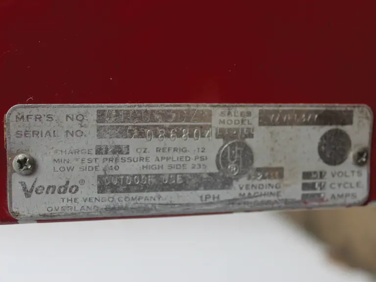 Mfr's no. 01C0630ZFSerial no. 9KC08680427 in. × 23 in. × 58 in.