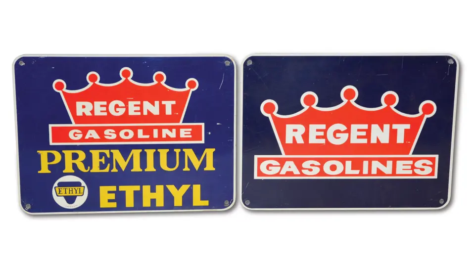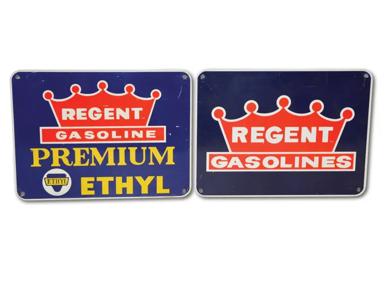 Both signs have good color and shine, with some wear and scratches.