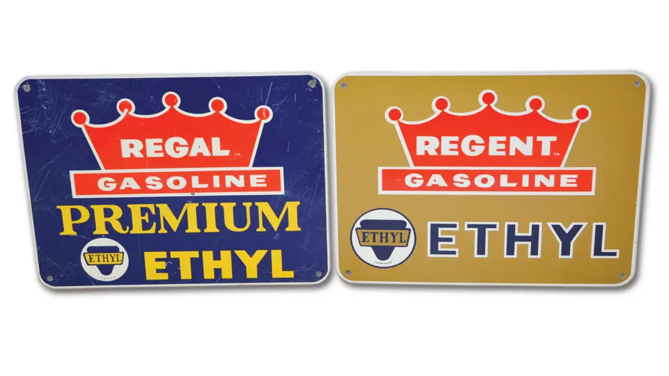 Premium sign has heavy scratches. Gasoline sign is in very good condition.