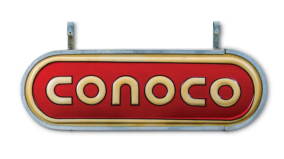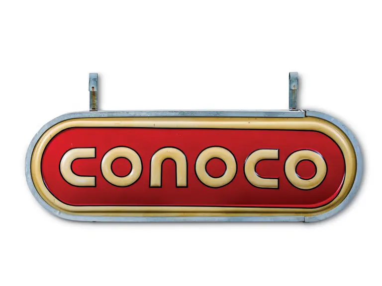 This sign is in good condition. There are no cracks, it lights up, and the white is yellowed.
