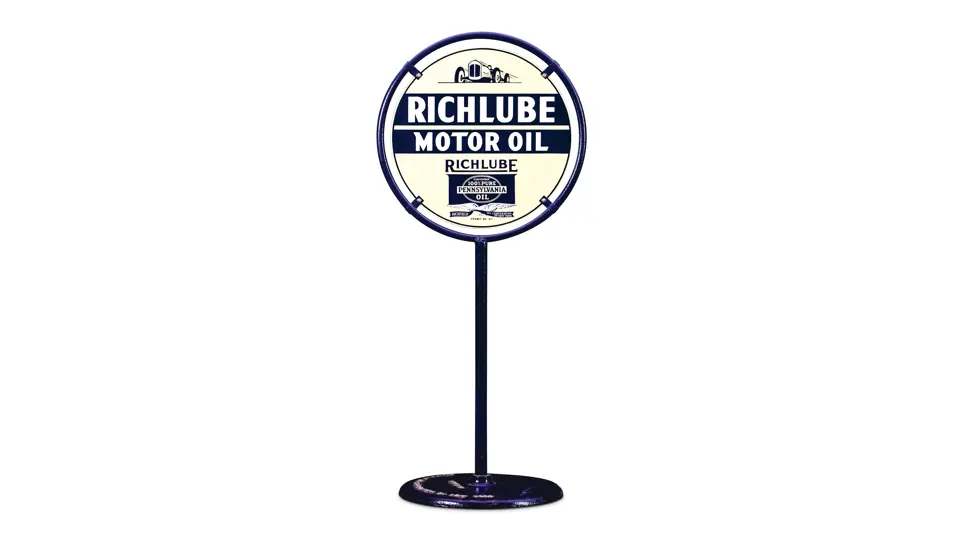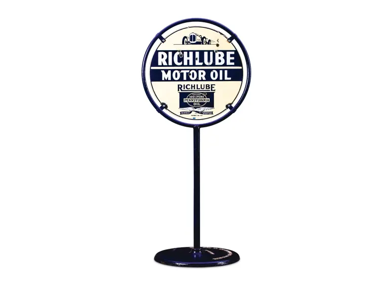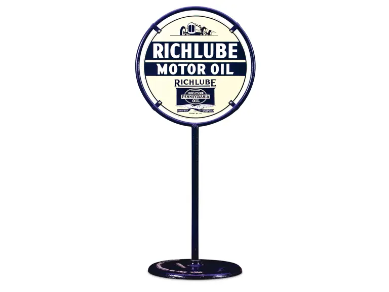 DSP sign. The display has chips in the field but the reverse has been restored. It is mounted on a Richfield cast iron base.