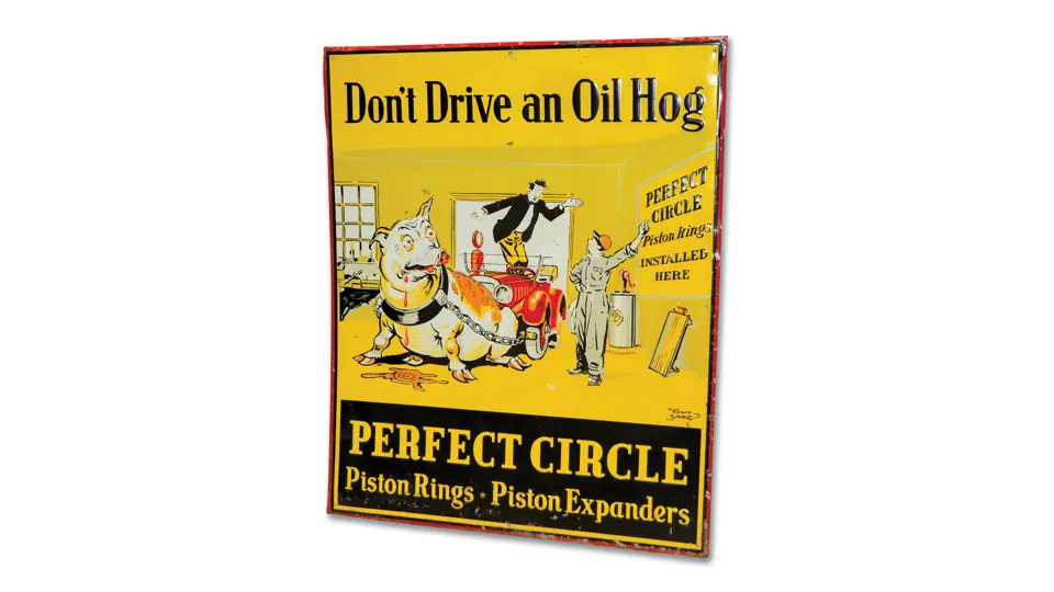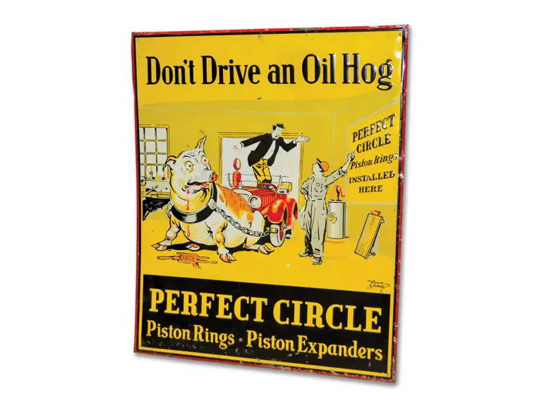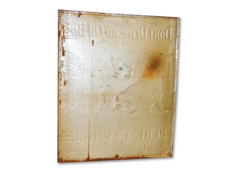 SST embossed sign. It has very good color and shine with light wear and some small dings.