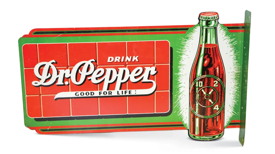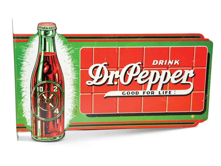 Tin diecut flange sign. It has very good color and shine with light wear and fine scratches. It is marked Robertson.