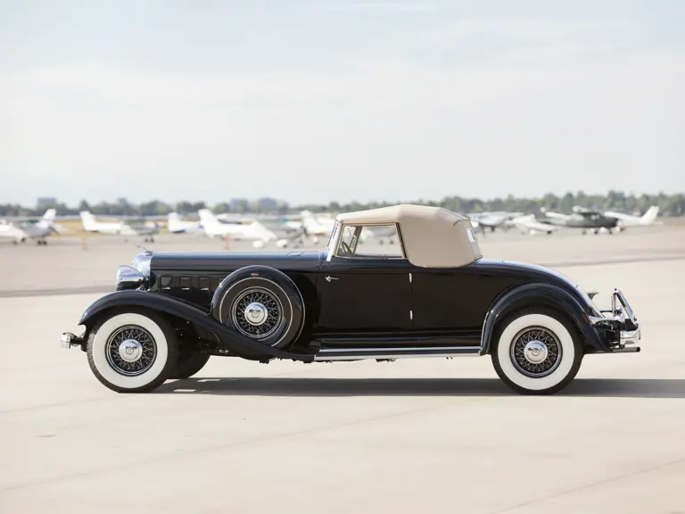 David E. Kane, of Bernardsville, New Jersey, purchased the car through Joseph Morgan from Reichert in 1998, still unrestored. As one of six known to exist today, it was also the last of those known to be unrestored when restoration commenced in 1999. The restoration of this car was handled by noted experts Stone Barn Restorations, of Vienna, New Jersey. The interior was expertly crafted by the Sharp Automotive Upholstery, of Elyria, Ohio. The car is finished as originally built, in the correct color of black with a tan top and a tan leather interior. The interior is replete with a spectacular “engine-turned” dash, highlighting the crisp white-faced gauges. Dual side-mount spare tires with body-color covers, double whitewall tires, the golf bag door in the side of the body, and the opening windshield add to the sleek and dashing exterior appearance, producing a car that seems ready-made for sweeping up the driveway at the polo club—perhaps with a couple of friends tucked into the rumble seat.