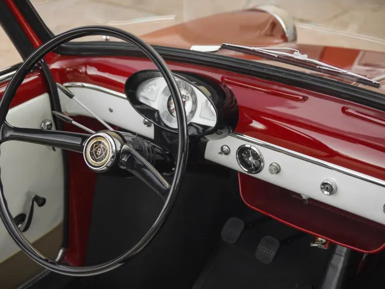 This is an excellent example of one of the world's most attractive microcars. A complete, high-quality, photo-documented restoration was undertaken to bring this Bianchina to show standards. During the restoration, this car was brought down to a bare tub, media blasted with aluminum oxide, and all of the internal floors and doors were treated with POR15 products before the final body and paint work. The exterior is finished in a brilliant red with cream accents and is sporting a new, black fold down top. The inside of this lovely little car is tastefully trimmed in tan and cream. Any experienced buyer will notice the level of restoration this Bianchina has received, down to the new or fully rebuilt mechanicals; attention to detail is what makes this car truly a one-of-a-kind.