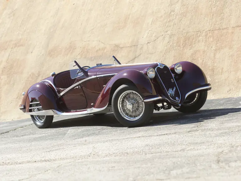 The 6C 2300B chassis is known for its nimble and precise handling, and it is even more responsive in the short wheelbase form. Its fully-independent suspension is at the same time compliant and comfortable, making it the ideal vehicle for tours and events. Enjoyment and satisfaction is assured by this example’s high performance 110 horsepower and the long stroke six’s smoothness and torque. Although any 6C 2300B is a pleasure to own and drive, this example’s beautiful coachwork puts it in the company of the finest and most exquisite coachbuilt classics, a standout in any display, vintage race meet, or tour. This is a classic Alfa Romeo that will bring pride and satisfaction to its owner.