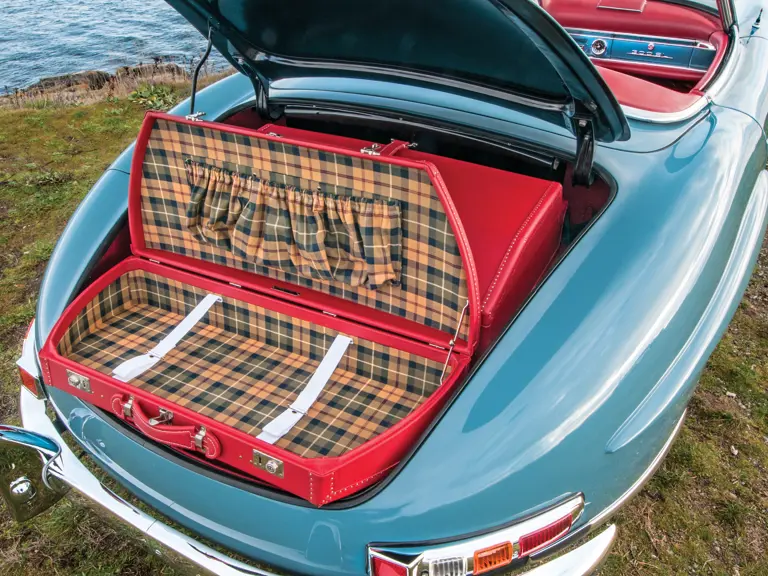 This very correct Roadster comes complete with color-matched two-piece fitted luggage, a tool roll, a jack, the rare Becker Mexico short wave radio, and an original owner’s manual. It ticks all the important boxes, and it is as delightful to drive as it is to look at.