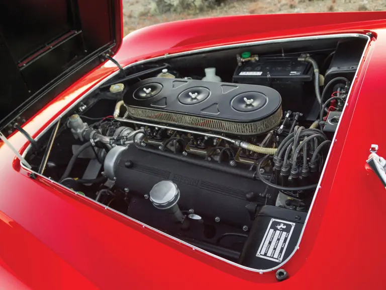 As a long-wheelbase example, the trim lines of its topless coachwork are as elegant as they are timeless. The overall effect is long, low, sleek, and decidedly sporting. The California Spider is as close as Ferrari came to building a touring class sports car since the early Barchettas, and only it and the later 275 GTB/4 N.A.R.T. Spiders have the elemental high-speed, open-air attitude that sets these cars apart from their more common cabriolet counterparts. Chassis 1055 GT is a spectacular example, with a notable absence of apparent or known damage in its well-documented past. As such, this offering represents a rare opportunity for anyone with a passion for the very finest Ferraris, and it would likely be the centerpiece of any collection of road going Ferraris or sport GTs. Fitting the updated 250 Tour de France’s superlative chassis with the gorgeous and distinctive spider coachwork was a master stroke of brilliance, and the result is a perfect symphony of sound and beauty, blending the most achingly handsome automotive form with the most glorious, soul-stirring automotive aria of them all.