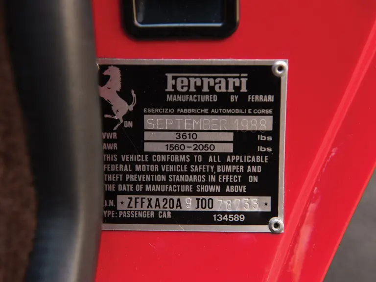Surely one of the lowest mileage examples available, this particular open-top 1988 328 GTS has just under 10,250 miles on its odometer from new. Finished in Rosso Corsa with an unusual and attractive brown leather interior and carpeting, the car presents as one would expect for such a low-mileage example. The car received its last major service in September 2011 at Continental Auto Sports of Hinsdale, Illinois, and has been driven very sparingly since. More recently, the car has been serviced and maintained by Autosport Designs of Huntington Station, New York, and is reported to be ready to drive and enjoy in every way. Furthermore, it is accompanied by a complete tool kit, its owner’s manuals, and a file of previous service documentation confirming its mileage.