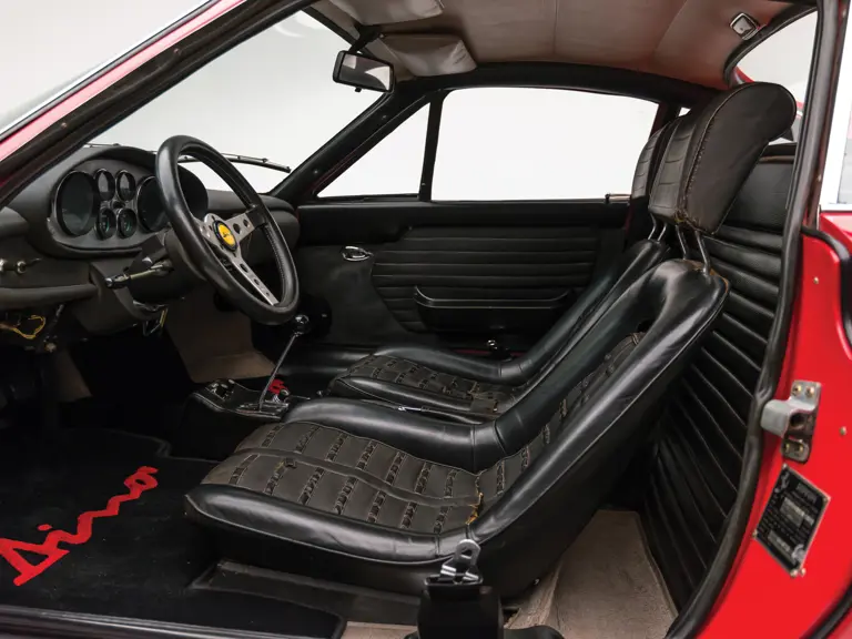 Chassis number 04970 was completed by the factory in November 1972, appointed with air conditioning and power windows, and finished in rosso chiaro with a black leather interior. Specified for the American market with instruments in miles, the 246 GT was also equipped with new optional 7½-in. Campagnolo wheels, which required special flaring of the fenders. By virtue of also being appointed with Daytona-style seats, this Dino is a legitimate factory-equipped ‘Chairs & Flares’ coupe, of which only five examples are known to have been specified for the U.S.