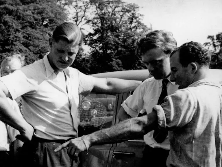 In May 1955, the D-Type was sold to Jack Broadhead with the intention of competition use by driver Bob Berry, who was also Jaguar’s public relations manager. Berry drove the car in several British events during the season, finishing 2nd at Goodwood thrice, 2nd at Oulton Park, and 3rd at Aintree. En route to the Portuguese Grand Prix in late June, the transporter broke down. The tools and spares were loaded in OKV 2 and it was driven 980 miles to the race. Incredibly, the D-Type finished 5th and was then driven the 980 miles back.