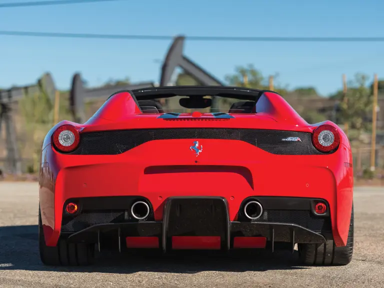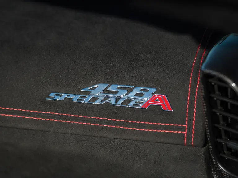 Presented in as-new condition, this is one of finest Ferrari 458 Speciale Apertas available. Having barely been driven beyond factory testing, with less than 200 miles showing on its odometer, the car remains in flawless condition. Finished in Rosso Corsa with black racing stripes over a matching Nero Alcantara interior, the 458 is equipped with abundant options. These include brake calipers in Rosso with carbon fiber wheel caps, the outer B-pillars finished in carbon fiber, the desirable telemetry kit, front suspension lifter, heat-insulated windscreen, headliner trimmed in Alcantara, Alcantara wheel arches, front air vents in carbon fiber, cruise control, the Cavallino Rampante stitched on the headrests, as well as over $23,000 in “other options.”