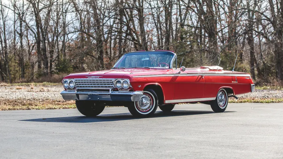 The SS or Super Sport option was available for the first time in 1961, and in 1962 it became a separate sub-series in the Impala lineup, offering both coupe and convertible models. In 1961, fewer than 500 Impalas received the Super Sport treatment. By the end of 1962, nearly 100,000 Impala buyers wanted SS initials on their new cars. The SS models included special SS badging and wheel covers, side molding insert, engine-turned rear cove molding, passenger assist bar, and bucket seats with console – for just $53.80 extra. No wonder so many chose the SS option! Chevrolet built 75,719 Impala convertibles, and they remain equally as popular today as when new.