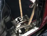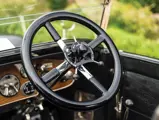 The car is finished in dark red and garnet, with part of the aluminum coachwork left unpainted and polished to a beautiful mirror-like contrast, accentuated by a folding black leather top and hinged window frames, a signature of the Salamanca design. Plating is correct nickel finish throughout, and the engine compartment and chassis are both very tidy and correct, including the proper linked fan belt. Within the rear passenger compartment is an oasis of luxury, with tufted deep scarlet cloth upholstery, accent pillows, and silk assist loops. The car is offered with complete sets of road and hand tools, including the rare spare bulb holder, as well as an original owner’s handbook and assorted owner and historical documentation.