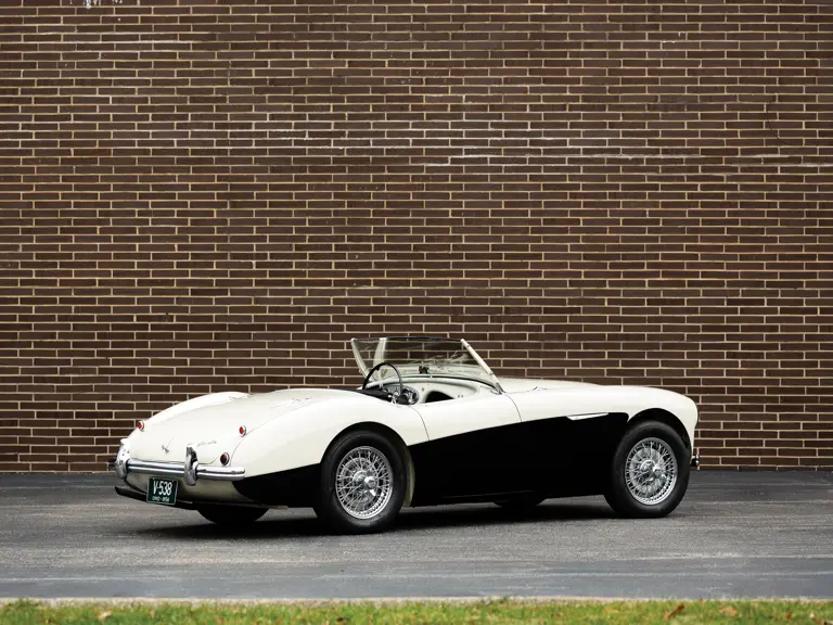 In late summer of 1955, an updated model dubbed the Austin-Healey 100 BN2 bowed. Visually, it was distinguished by beefier front wheel arches, and many left the Longbridge factory with two-tone paint. A four-speed manual with overdrive and a revised rear axle ratio provided the BN2 with more spirited performance. The Austin-Healey 100 proved especially popular in California’s budding car culture. Nearly three-quarters of Austin-Healey 100 BN2 production was earmarked for California, including the example offered here, which left the factory on 7 June 1956 bound for Los Angeles.