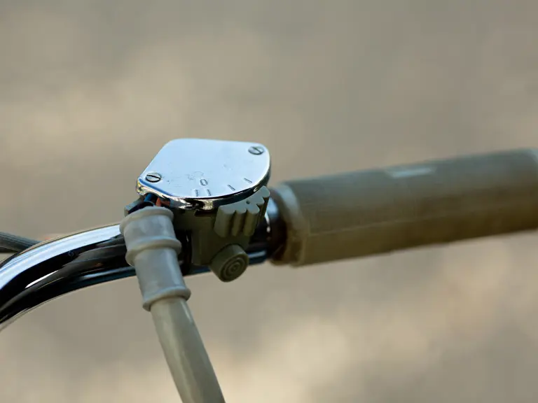The Ape Calessino variant, like this rare 1954 model, was effectively a motorized rickshaw with bench seating beneath a retractable cloth canopy. Here, the wood and masonite body pairs nicely with the green metallic paint, lending flair to what might have otherwise been humble transportation. Restored in the past to factory specification and now showing the patina of careful use, this example also benefits from a 150-cc engine, which first became available in 1952, and an upgraded cable-operated gear change.