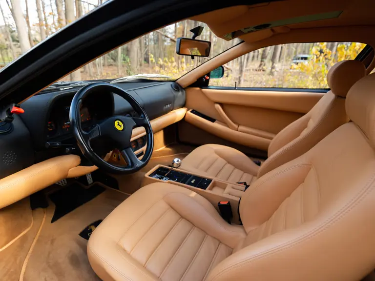 This Nero over tan F512 M example offered here is the 34th of just 75 US-market examples produced. Presently indicating fewer than 15,300 miles at time of cataloguing, it was delivered new to Shelton Ferrari of Fort Lauderdale, Florida on 17 August 1995. Two months later, it was purchased by its first owner, a New York resident who kept the car at his fair-weather home in Florida. This F512 M was regularly maintained by the originating dealer until sometime just before December 2004, at which point it was fitted with a replacement water pump by Ferrari of Long Island in Glen Cove, New York.