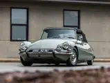 Finished in a pleasing combination of gray-green metallic over a dark green leather interior, the car is equipped with a black soft top, headrests and armrests for the front seats, optional Jaeger instrumentation, and a Weber carburetor. The 2.2-liter inline four-cylinder engine is paired with a four-speed semi-automatic transmission. Extremely well documented, this DS 21 cabriolet amounts to a rare and compelling piece of automotive history teaming with period innovation and stellar design.