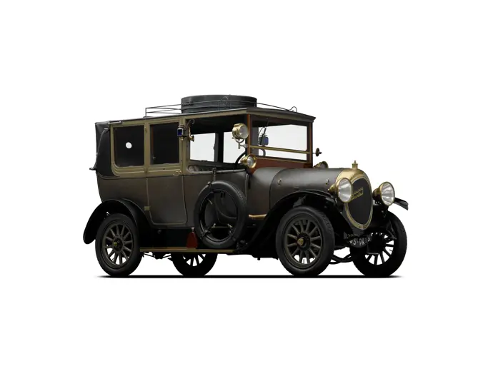 • Gracefully streamlined three-position cabriolet factory coachwork