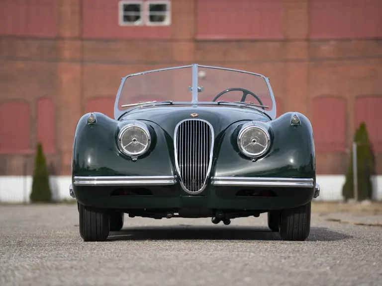 Famously debuting at the 1948 Earl’s Court Motor Show, the car was thought by Lyons to be a limited production model. All plans changed once the public laid eyes on it. Faced with overwhelming interest, Lyons and his team quickly altered the hand-formed aluminum body to one of all steel and thrust the showstopper into production. The XK 120’s performance proved historic as its competition-bred evolution, the XK 120-C—better known as the C-Type—would go on to win the 24 Hours of Le Mans in both 1951 and 1953.