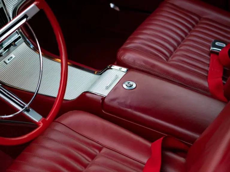 This 1962 Thunderbird Sports Roadster features the desirable “M-Code” 390-cubic-inch V-8 engine with three two-barrel carburetors and a higher compression ratio, of which only 120 Sports Roadster models are said to have been fitted with from the factory for the model year. It also bears the distinction of having been restored by marque specialist Jerry Capizzi in the early 1990s. Soon after completion, the car was campaigned at shows across the country and successfully achieved First Place and Larry Seyfarth Best of Show at the 1993 Vintage Thunderbird Club International Convention, First Place Junior at the 1994 Antique Automobile Club of America Central Division National, First Place Senior at the 1994 VTCI National Convention, First Place Senior at the 1993 AACA Eastern National Fall Meet, First Place and Preservation Award at the 1995 AACA Grand National, First Place Senior at the 1996 AACA Grand National, and a Class Award at the 1999 Meadow Brook Concours d’Elegance.