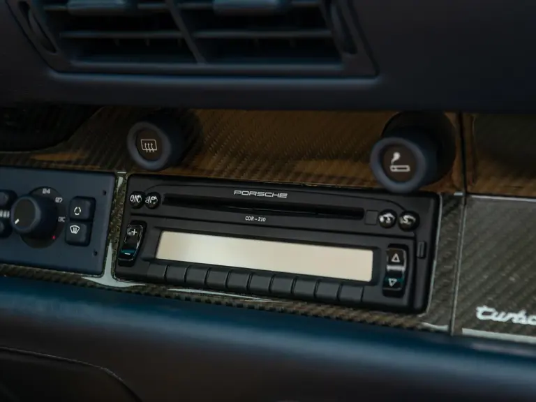 The type 993 Porsche 911 Turbo S provided a dramatic and fitting final chapter for the air-cooled era, being the last air-cooled 911 Turbo built by Porsche. A true limited-production model, 183 examples were manufactured for North America, each carefully and uniquely prepared by Porsche’s Exclusive department with bespoke features and numerous engine and chassis upgrades. Powered by a 3.6-liter flat-six engine featuring an alloy crankcase and cylinder heads, the Turbo S received larger twin KKK K24 turbochargers for instant throttle response and a new Bosch Motronic engine-management system modified to handle the additional output, which increased to 424 horsepower at 6,250 rpm for the US market. A secondary oil cooler was also added to better dissipate heat.