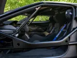 The single-owner example offered here, serial number 031, has never seen track time and hardly been driven at all, showing only 27.3 miles on the odometer at cataloguing time, accrued during the shortest of stints in the driveway to ensure proper function and maintenance. Finished in white with an exposed carbon-fiber center stripe and blue accents, it features one-off, custom livery evident on the rear wing. The Forgeline wheels are finished in Satin Graphite.