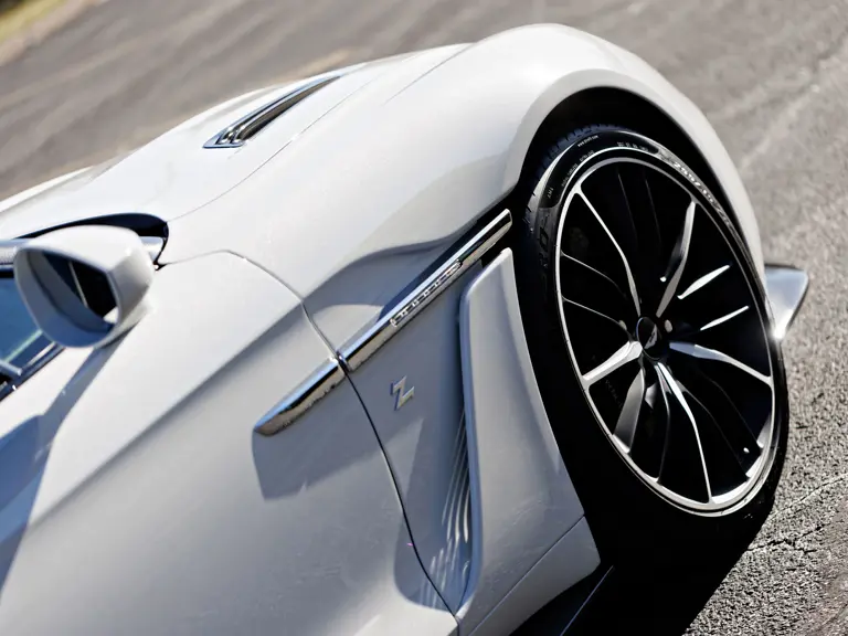Under the hood, Aston Martin fitted an uprated version of its AM29 5.9-liter V-12 engine. Equipped with a paddle-shifting, eight-speed automatic transmission and enormous carbon-ceramic brakes behind 20-inch alloy wheels, the total output was an astounding 592 brake horsepower—good for a top speed over 200 mph. Though the Vanquish Zagato’s prime appeal lies in its styling, the purity of its naturally aspirated V-12 and rear-wheel-drive layout make it a thrilling performer.