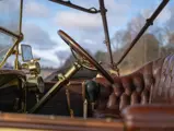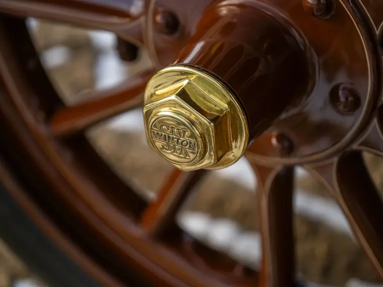 Mr. Wall’s estate sold the Winton in 2019 to another enthusiast. Soon thereafter it was purchased by the present owner in Northern California, himself a longtime Winton owner and enthusiast, who used it on a cross-country tour from New York City to Pebble Beach in 2021—much like the intrepid Horatio Nelson Jackson did behind the wheel of a Winton in 1903, as chronicled in the Ken Burns documentary “Horatio’s Drive: America’s First Road Trip.” It remains in extremely good overall condition, with its two-tone buff and caramel finish still attractive, as is the brown leather button-tufted interior, properly accented by beautifully polished brass lights, radiator, and badging.