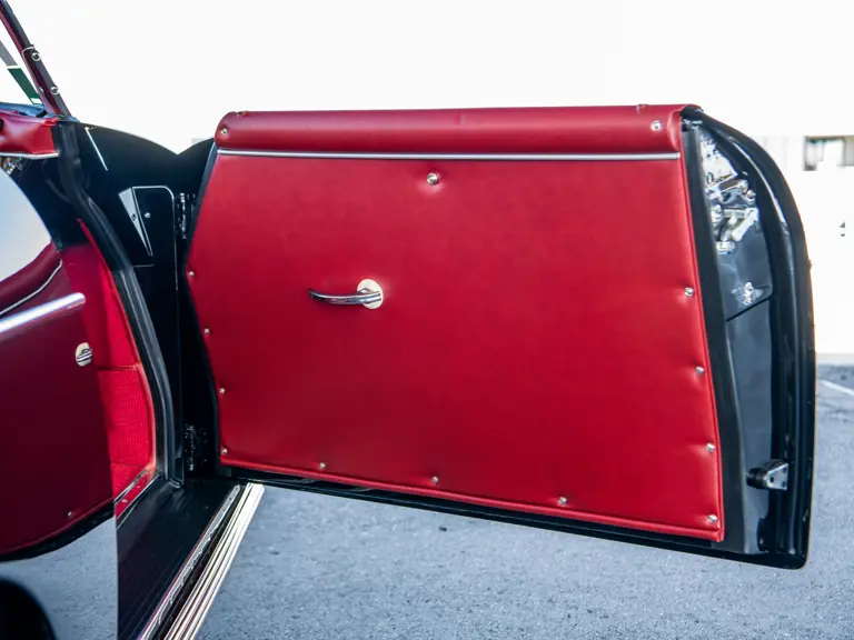 This example, chassis number 83438, left the factory finished in Black and outfitted with the more powerful 1600 Super engine, sealed-beam headlights, USA bumpers, and coupe seats, according to a copy of its Kardex on file. It was built on 11 June 1957 and distributed through the famed New York dealer Max Hoffman.