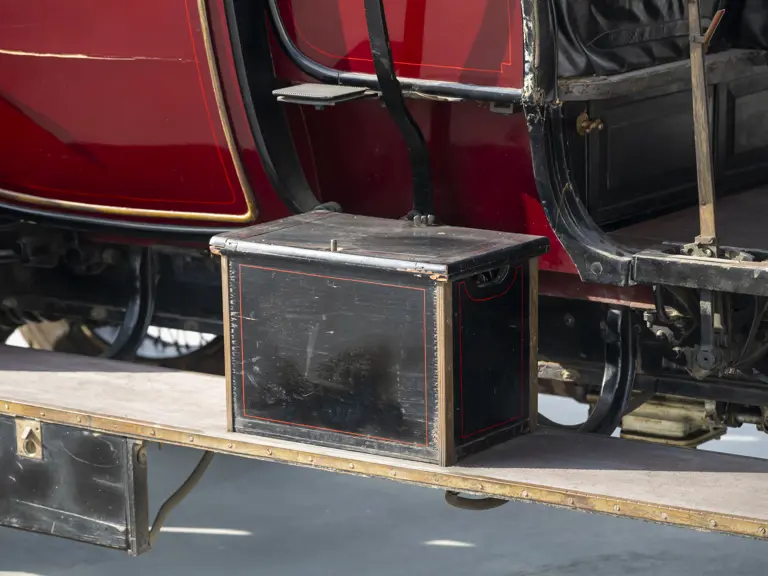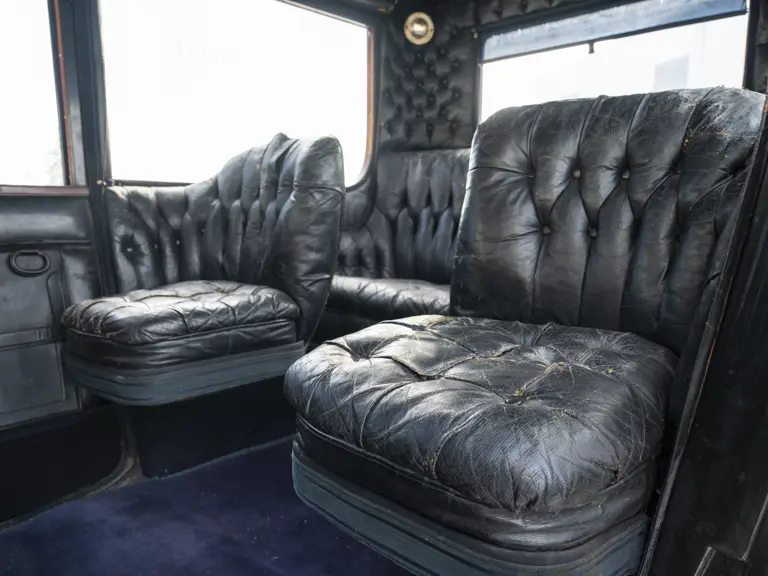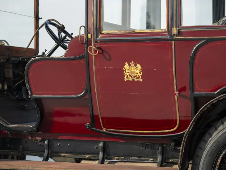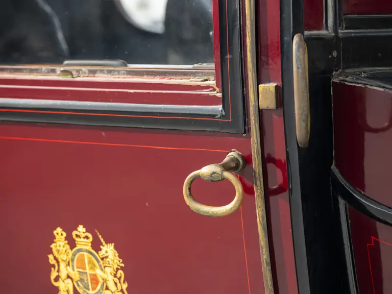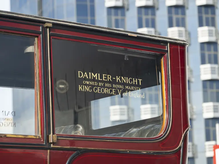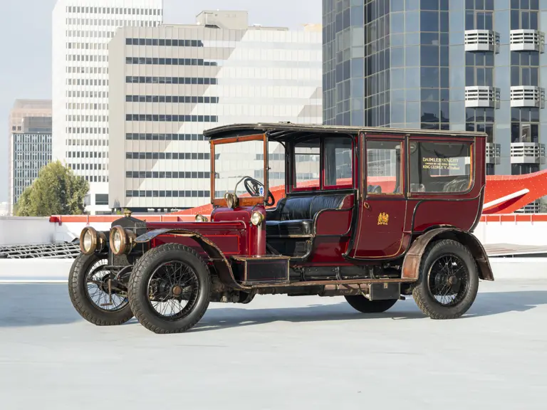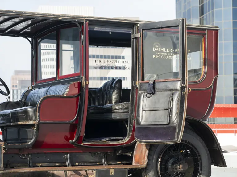 This limousine was the first of three 57 HP Daimlers acquired for the fleet of the British Royal Family. Regal, indeed, its Hooper-built coachwork ensured that it stood a remarkable 17 feet long and 7.5 feet tall, while being propelled smoothly and quietly along by an enormous 9.7-liter Knight sleeve-valve six-cylinder engine. The car is included in the roster of Royal Daimlers published in Brian Smith’s The Daimler Tradition, identifying it as chassis number TD 6314, a 57 HP model with limousine bodywork. Mr. Smith notes that it was delivered in June 1910 as one of three such cars delivered to King George V, who had ordered it while still the Prince of Wales. It has also been noted that King George and Queen Mary actually utilized the Daimler’s jump seats during official events, to better be seen by crowds of eager spectators.