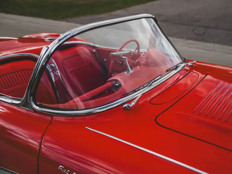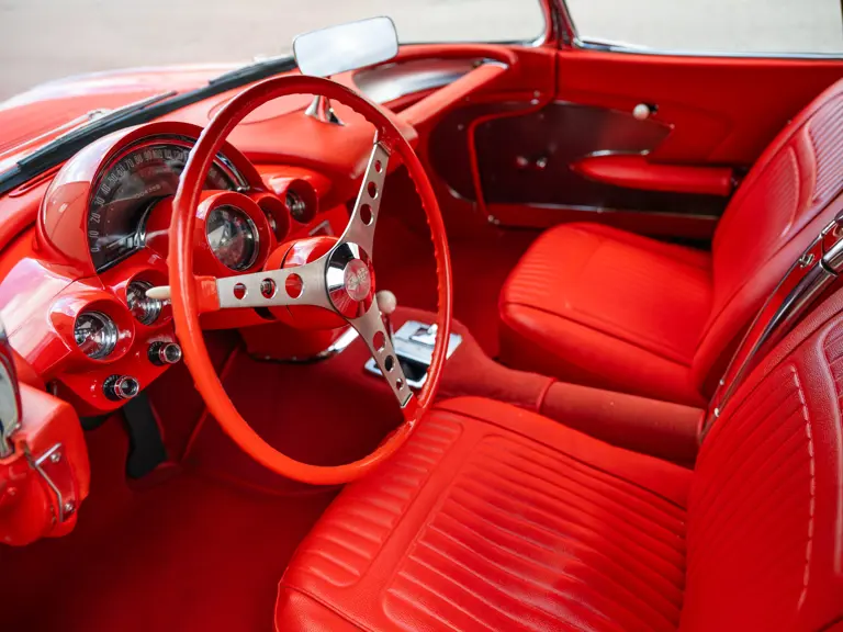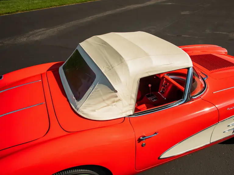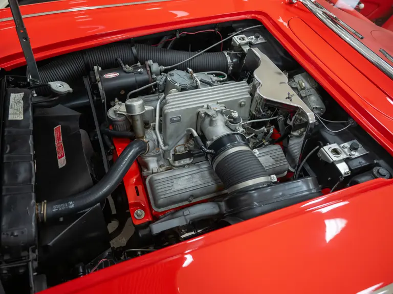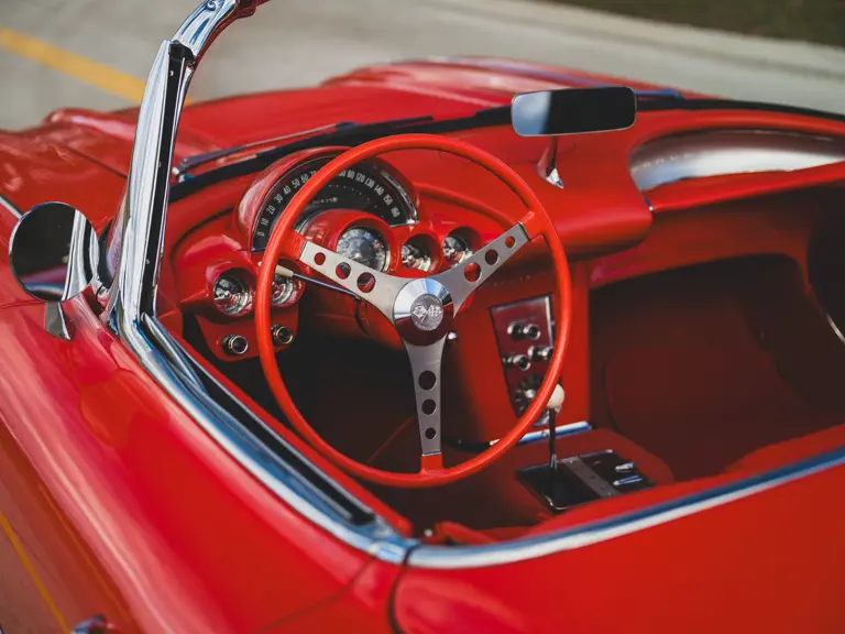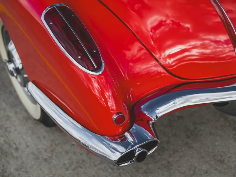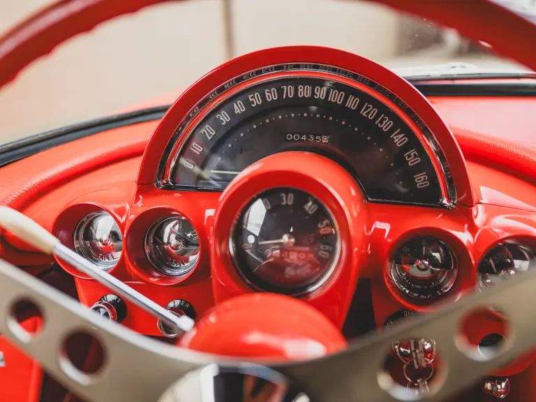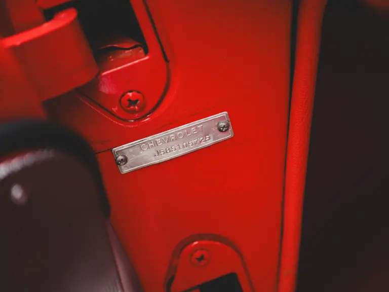 Chassis 105725 is one of these desirable 1958 models, featuring a striking Signet Red color scheme and equipped with one of America’s most iconic engines. Built at General Motors’ facility in October 1957, this early production example is powered by one of the year’s most potent drivetrains, the 250-horsepower, 283-cubic-inch V-8 with Rochester fuel injection and a four-speed manual transmission. Bearing all the hallmarks of a full restoration, the Corvette received a Bloomington Gold Certification in June of 1992.