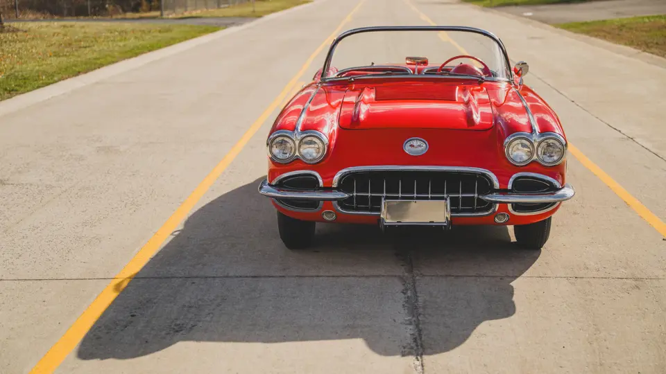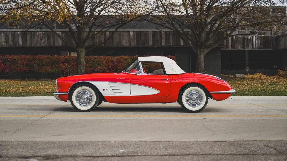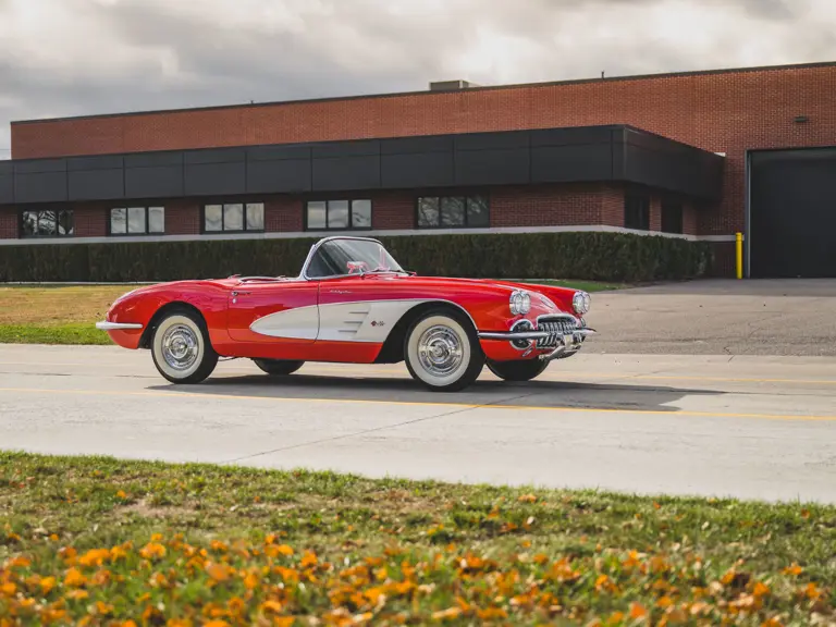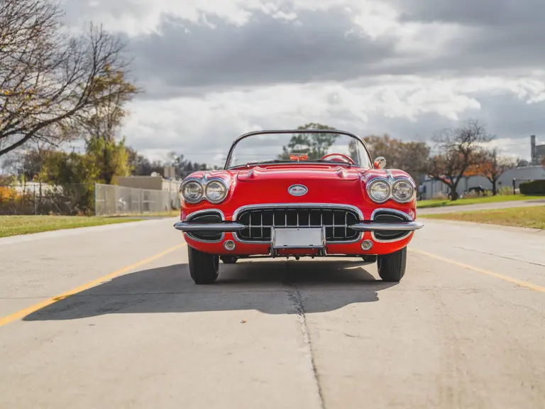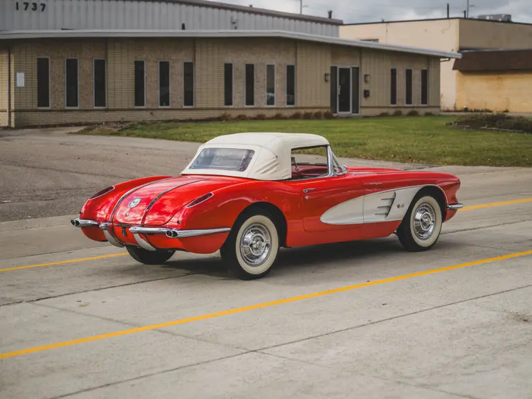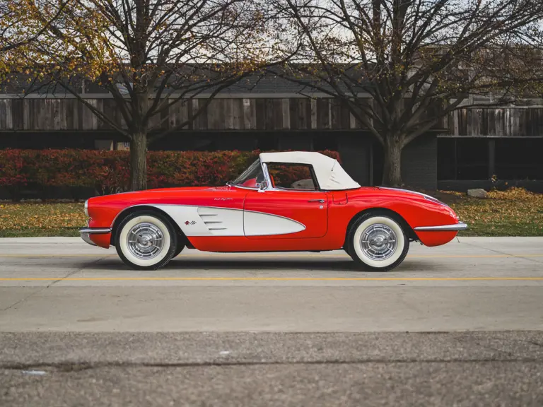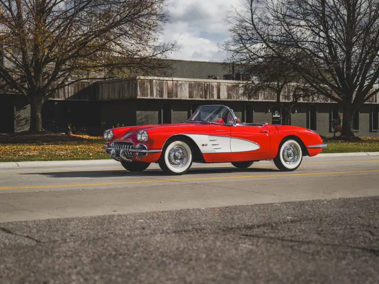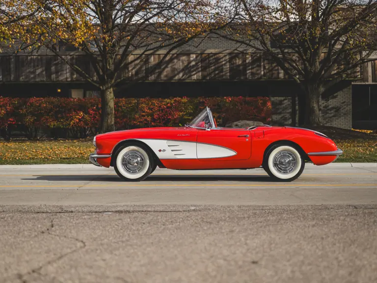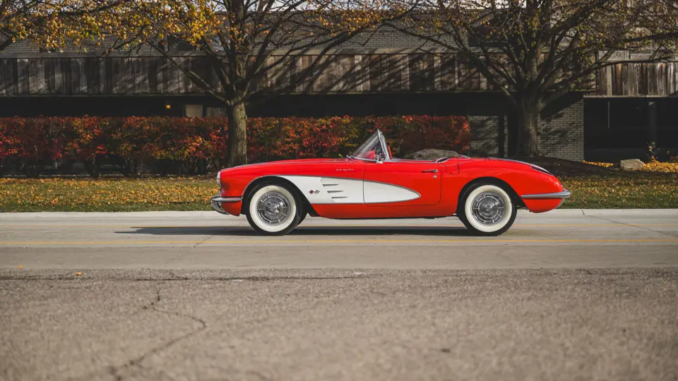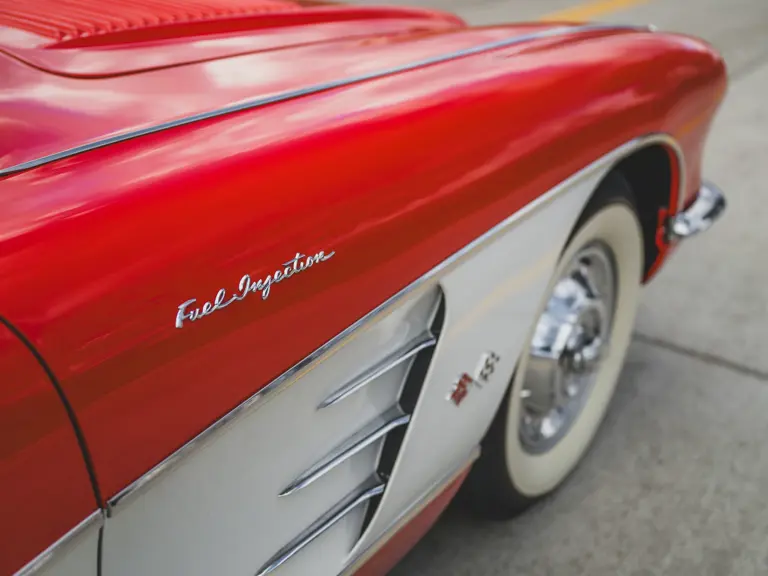 - First-generation “Fuelie” Corvette wearing the sharp redesign introduced for 1958