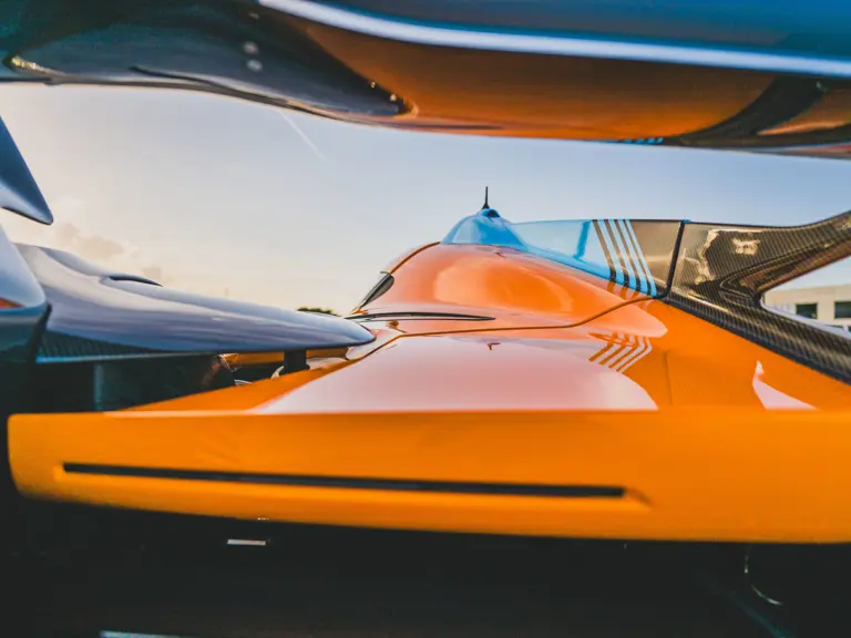 Limited to just 25 examples worldwide, the Solus GT is a testament to McLaren’s obsessive pursuit of performance, with every surface, intake, and channel engineered purely for function. The dramatic forward-sliding canopy reveals a central driving position reminiscent of a fighter jet, while sculpted wheel pods reduce turbulence and enhance high-speed precision. The vast front splitter channels air beneath the chassis into ground-effect tunnels that converge at the rear in an expansive diffuser, generating stability and downforce that exceeds the car’s own weight. Further refined through computational fluid dynamics and exhaustive wind-tunnel testing, the Solus GT’s silhouette is as visually striking as it is aerodynamically flawless.