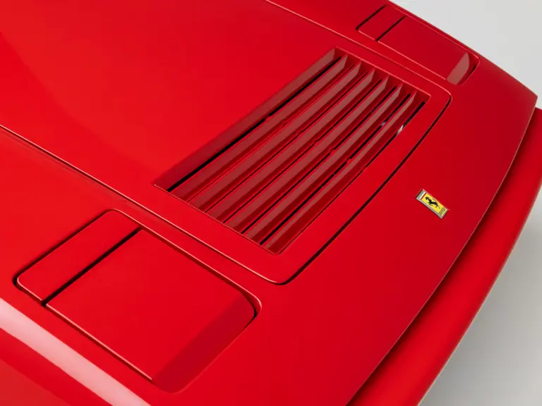 Designers at Pininfarina carefully balanced aesthetics with emerging research into drag coefficients and aerodynamic lift while staying true to Ferrari’s design language. Designer Leonardo Fioravanti’s original wedge profile was updated with a revamped nose and tail valance. Painted bumpers blended with the bodywork to further modernize the presentation. Gone were the exhaust louvers behind the retractable headlights, replaced with a larger front radiator louvre spanning the lower third of the hood.
