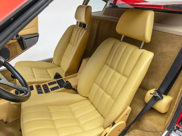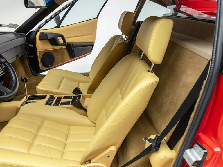 Its predecessor’s all-aluminum, naturally aspirated Dino V-8 engine was enlarged to 3.2 liters and fitted with a Marelli electronic ignition system while retaining its bulletproof Bosch K-Jetronic fuel-injection system. An antilock brake system was added to the four-wheel ventilated disc brakes in 1988, the car’s final year of production.