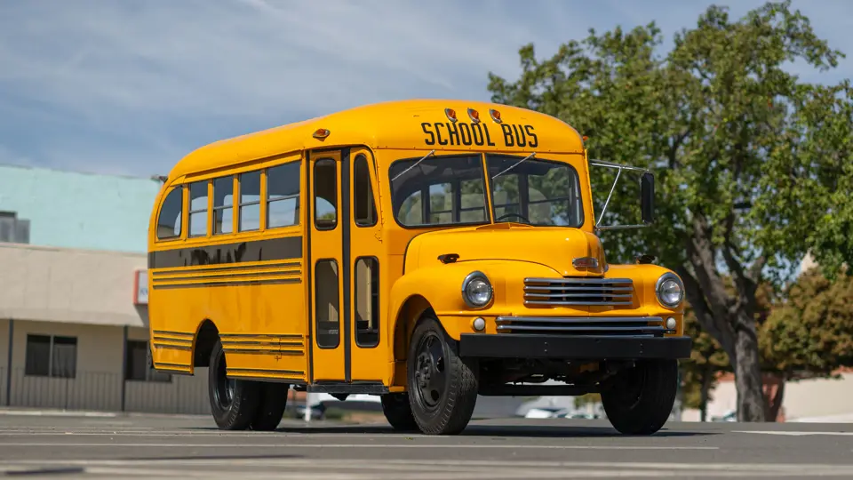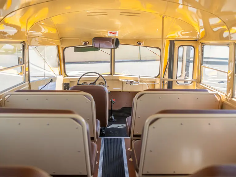 Following many years spent in a farmyard in Minnesota, this bus was acquired around 2010 by the noted expatriate Nash collector Tom Harrington of France and was restored in 2018. In addition to repairs to the chassis and bodywork, this comprehensive job paid close attention to details such as a stop sign, rows and rows of bench seats, and, of course, the classic yellow-and-black livery.