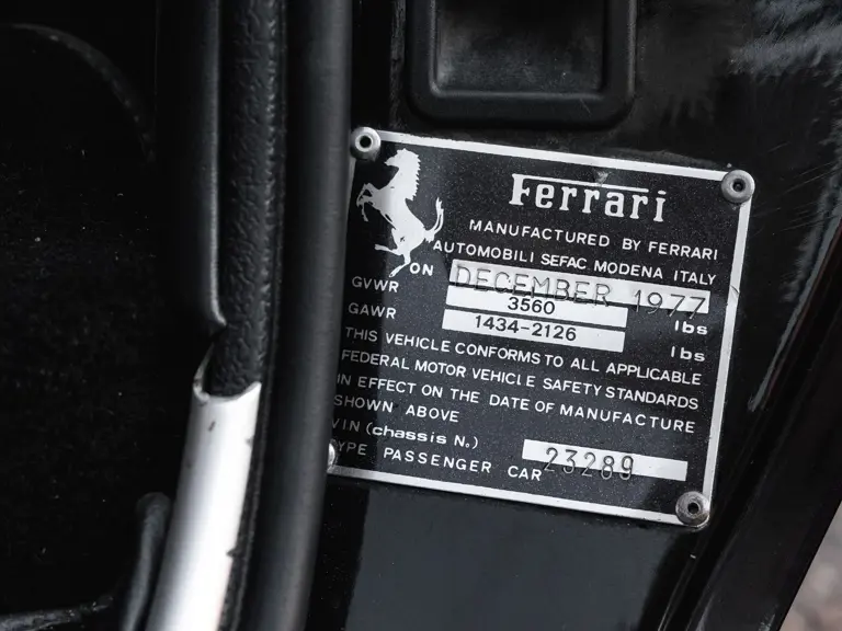 Believed to have spent most of its life in Arizona, this 1977 Ferrari 308 GTB completed manufacture in December 1977 and is believed to be one of 2,185 produced from 1967 through 1980. It is finished in the arresting combination of black over red leather and features a documented service history stretching back to the 1980s. Records show that in 1988, the engine was rebuilt by the renowned specialists at Bob Wallace Cars of Phoenix—a $9,596 service at the time—and the car continued to be maintained by them well into the 1990s.
