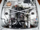 An aluminum roll cage and extra cross bracing under the hood improved rigidity and safety. The pedal assembly was custom fabricated, similar to those of other contemporaneous Porsche racers. A healthy amount of titanium components dropped weight further, while center-locking wheels reduced service time on pit lane. The body was constructed with lightweight materials, including aluminum, urethane, and fiberglass. The turbocharger was repositioned to the driver’s side of the engine bay for greater exhaust flow, and a larger intercooler was fitted, resulting in output over 300 horsepower. The inline-four fed into a strengthened five-speed transaxle featuring a limited-slip differential with its own cooling system.