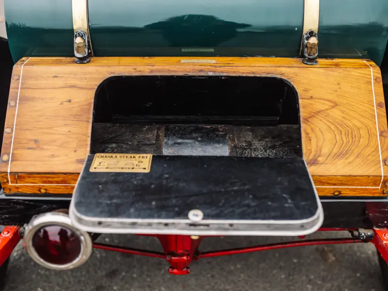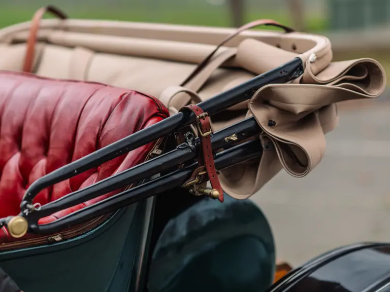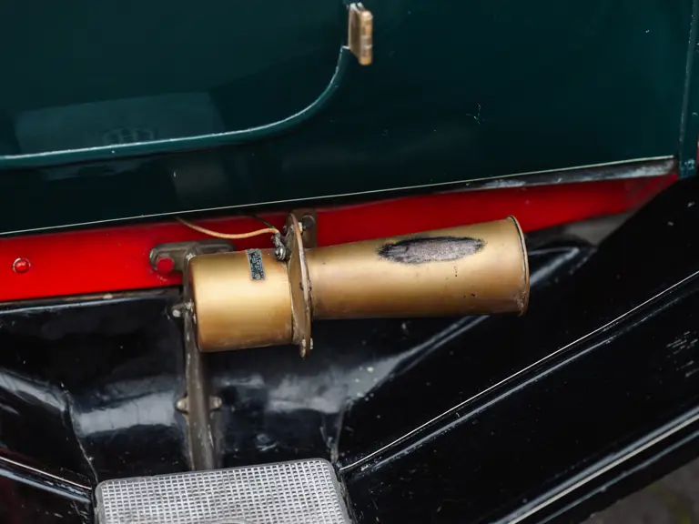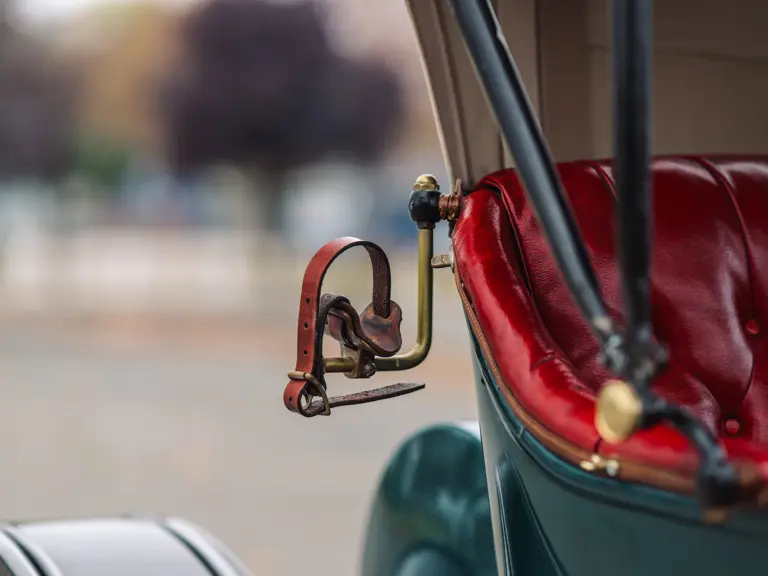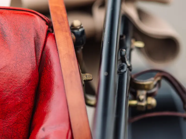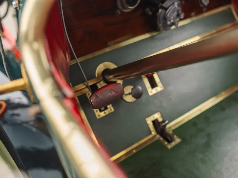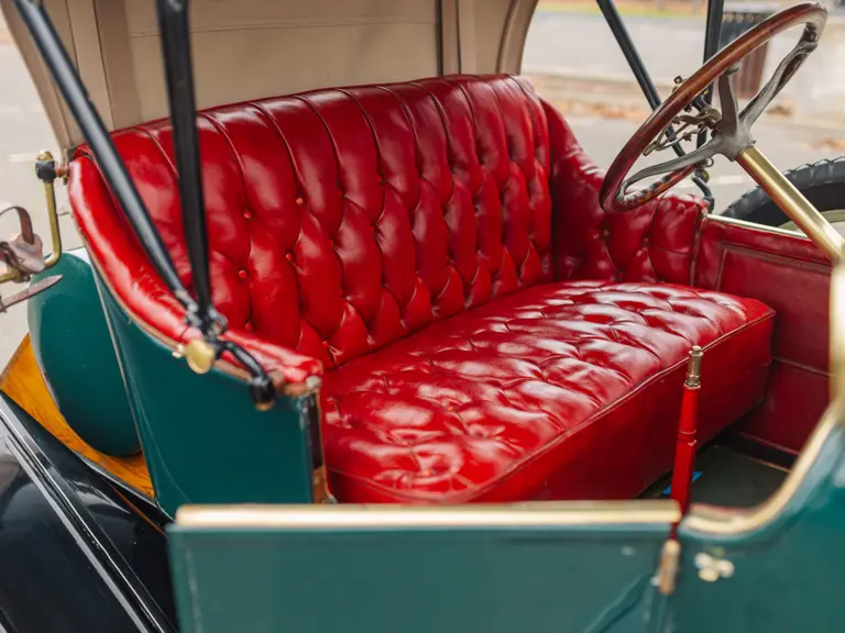 The consignor of this runabout acquired it in 2009 from the collection of Dr. Barbara Atwood of Rockford, Illinois, well-known for her many successes in the Antique Automobile Club of America, Classic Car Club of America, and concours competitions during the 1980s. Dr. Atwood appears to have acquired it elsewhere in the Midwest, as the dashboard bears a badge from a 1974 event in Minnesota. One of the few Brass Era cars in the Atwood stable, this Herreshoff wears a charming older restoration in deep green with red leather upholstery and is equipped with gas headlamps, electric side lamps, a Boyce MotoMeter, and a canvas top.