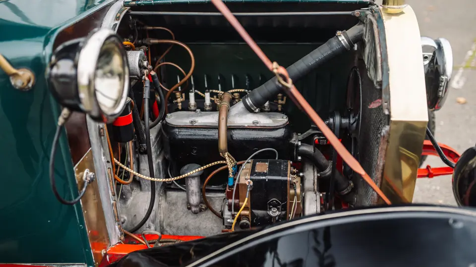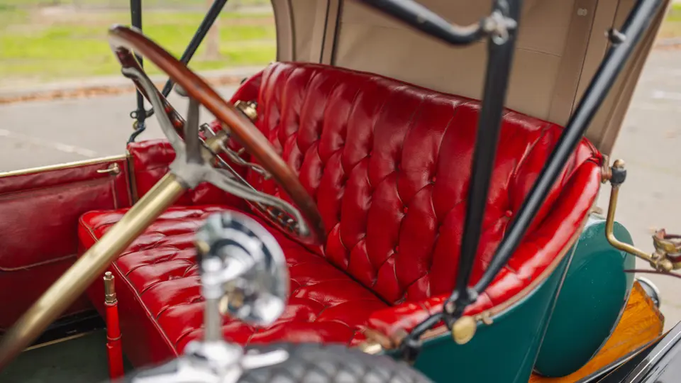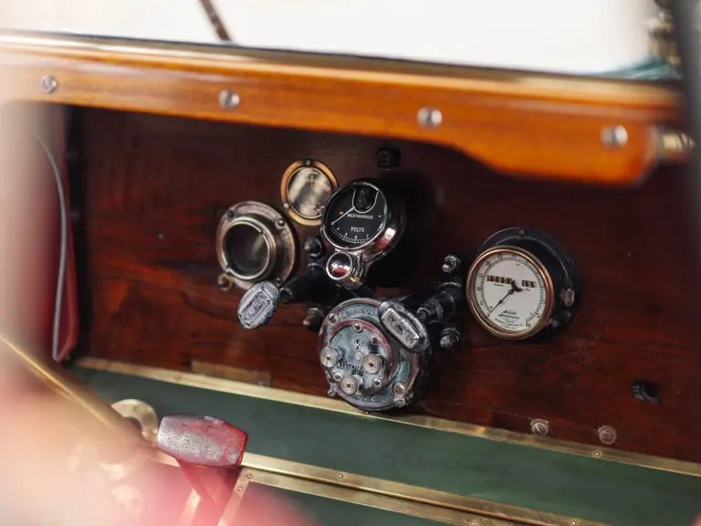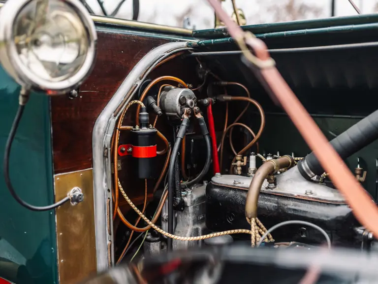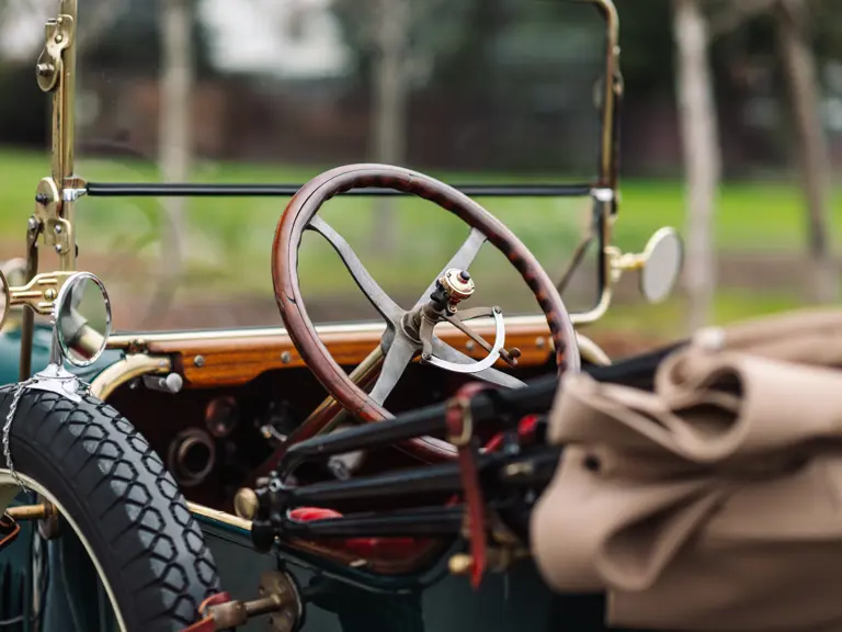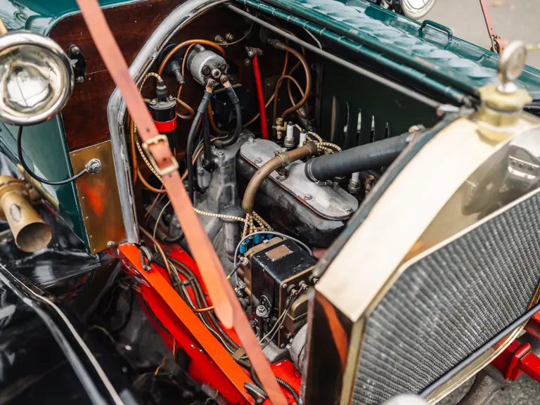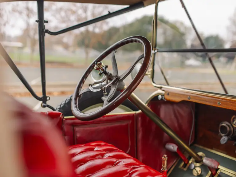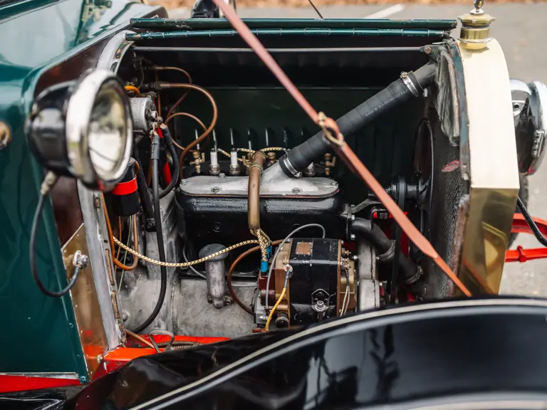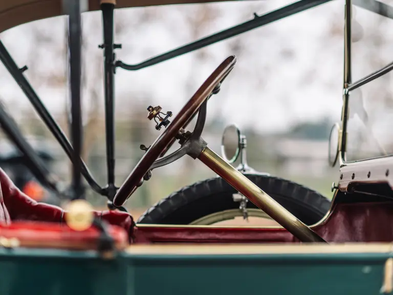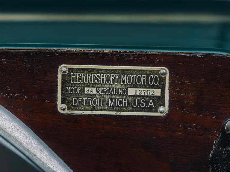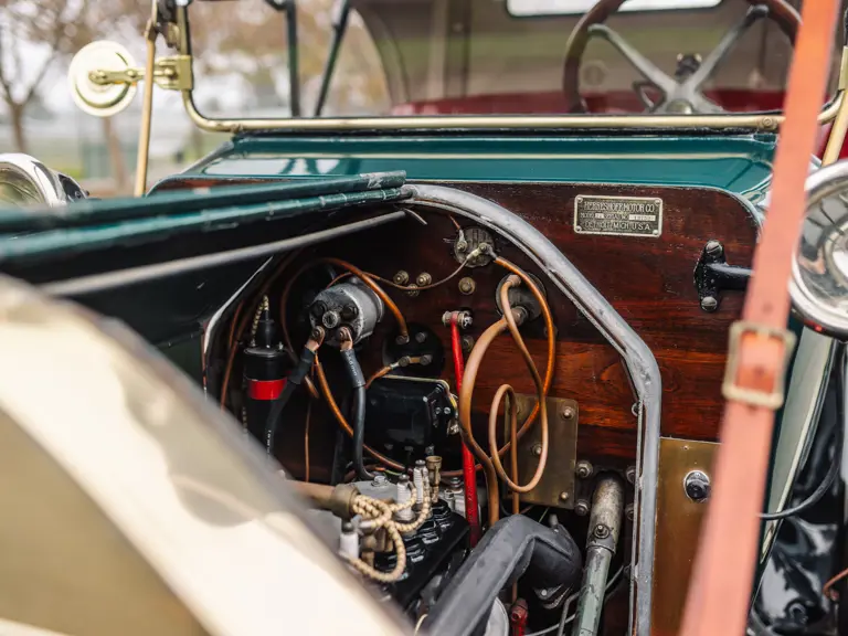 The car offered here, one of those rarities, is also the finest iteration of the marque. Built solely in the last season of production, the Model 30 used a modern four-cylinder engine, cast in a single block with enclosed valvetrain, delivering 30 horsepower through a three-speed sliding-gear transmission. It was also notable for having left-hand-drive, still a rarity on an American car of this era, which Herreshoff introduced in 1911.