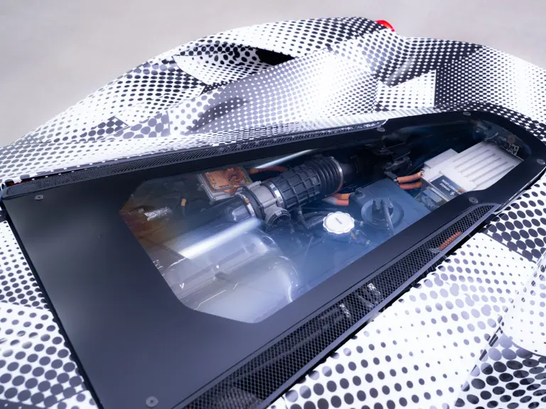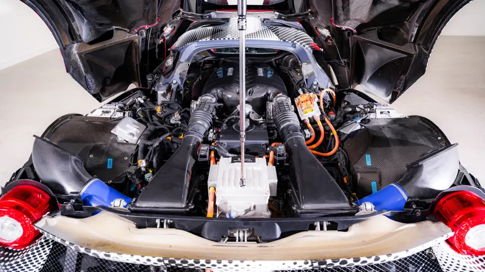 - Notably equipped with a naturally aspirated F140 FD V-12 without the production model’s hybrid system