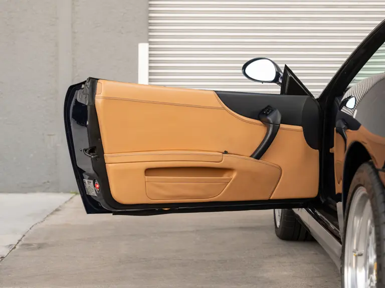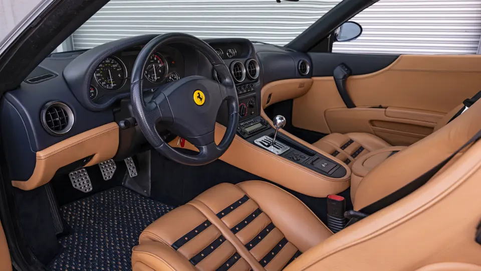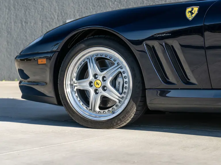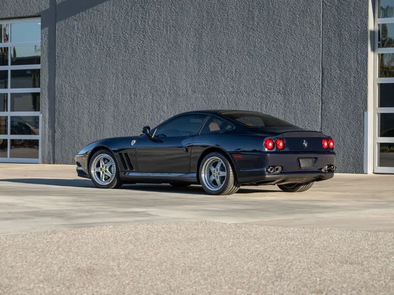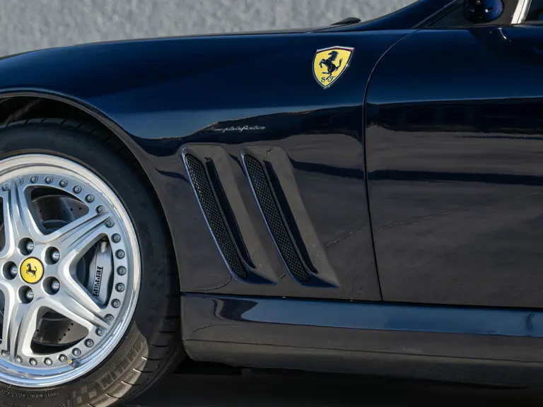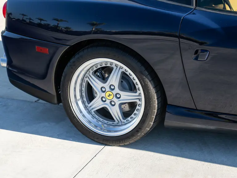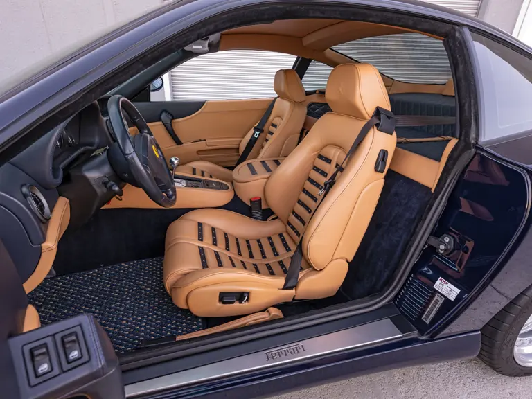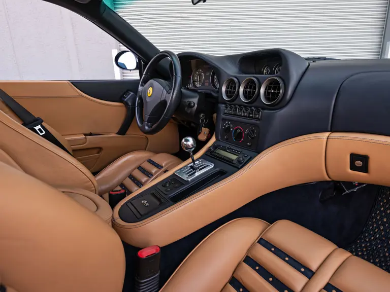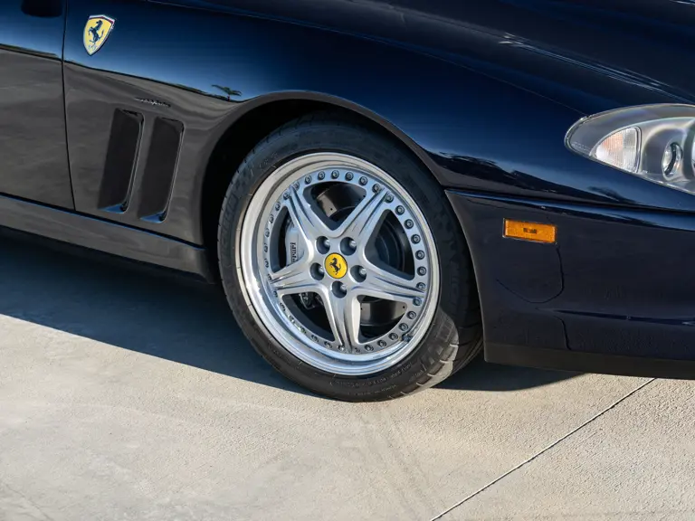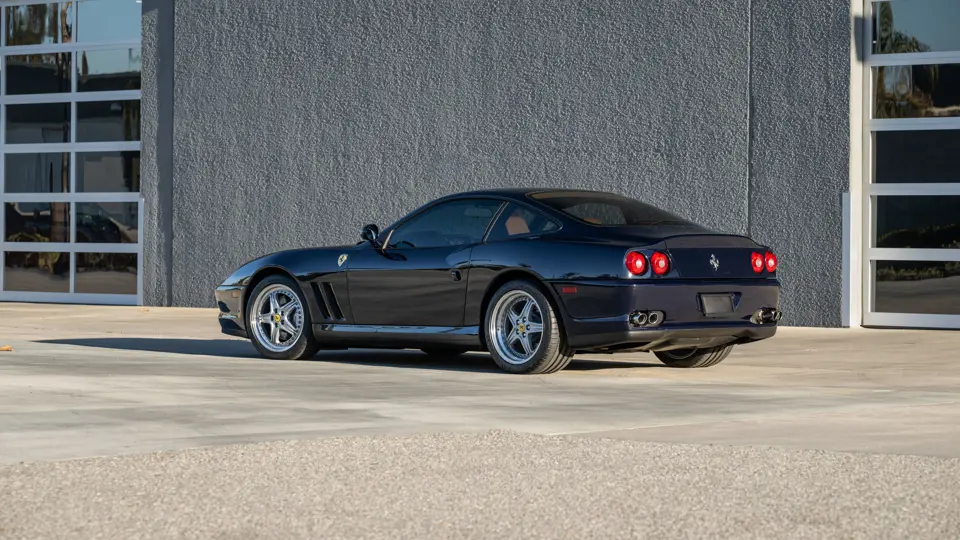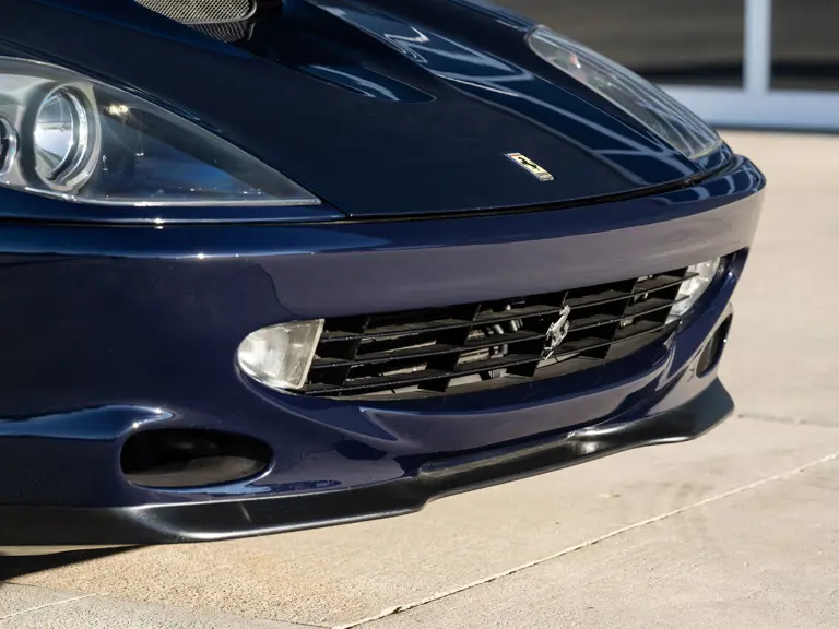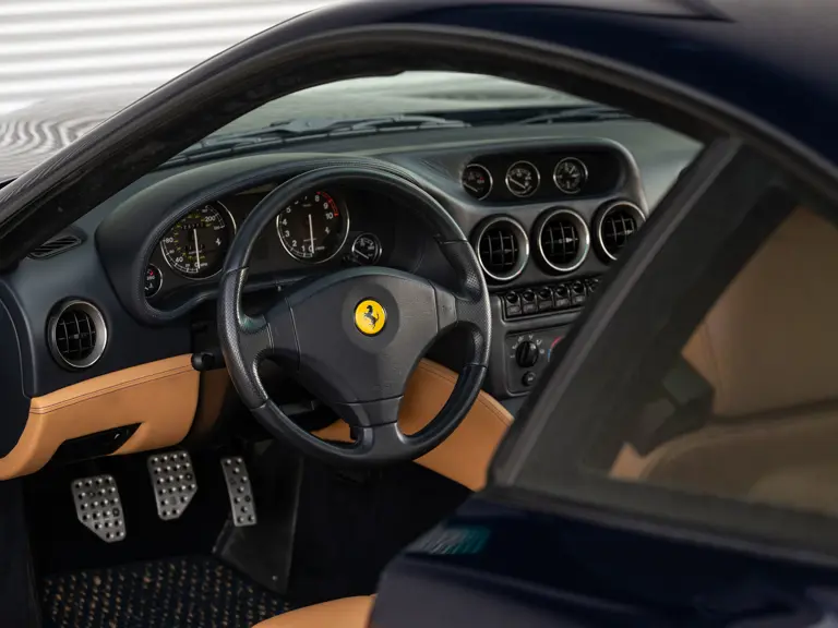 This 2001 550 Maranello left the factory finished as it is today in highly attractive Blu Pozzi, a relatively rare color named in honor of influential French racing driver and official Ferrari importer Charles Pozzi, whose teams often campaigned cars with blue livery, including a 512 BB LM at the 1982 24 Hours of Le Mans. The tan leather interior features dark-blue seat inserts and an optional quilted luggage shelf, also in dark blue leather, patterned after that of the 250 GT Lusso from the 1960s. Other factory options include Daytona seats, Barchetta-style modular wheels, and Ferrari shields. Originally delivered to Ferrari of Scottsdale, Arizona, in July 2001, service records on file dating back to 2006 attest to its mechanical upkeep.