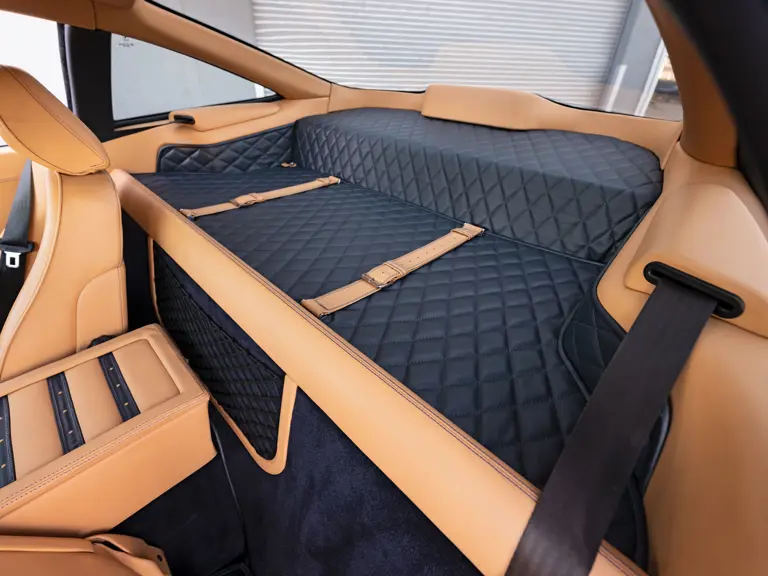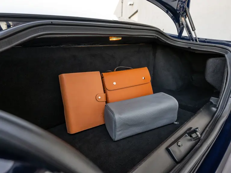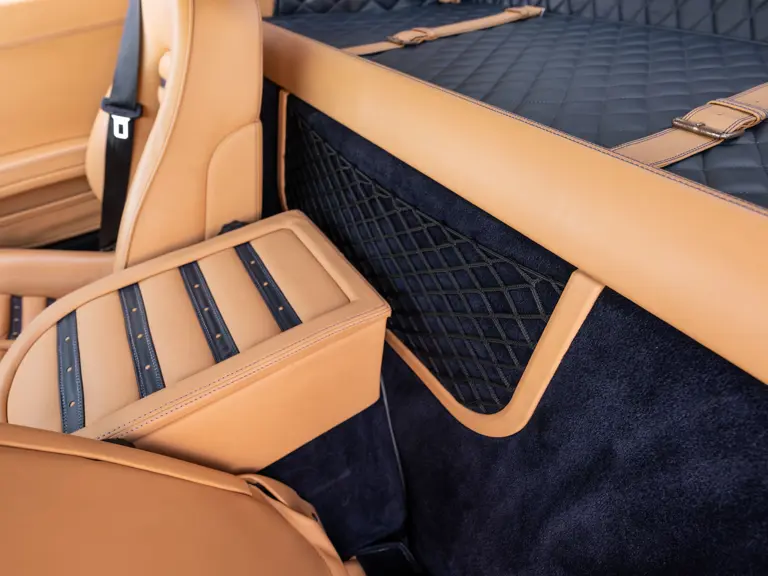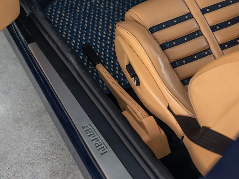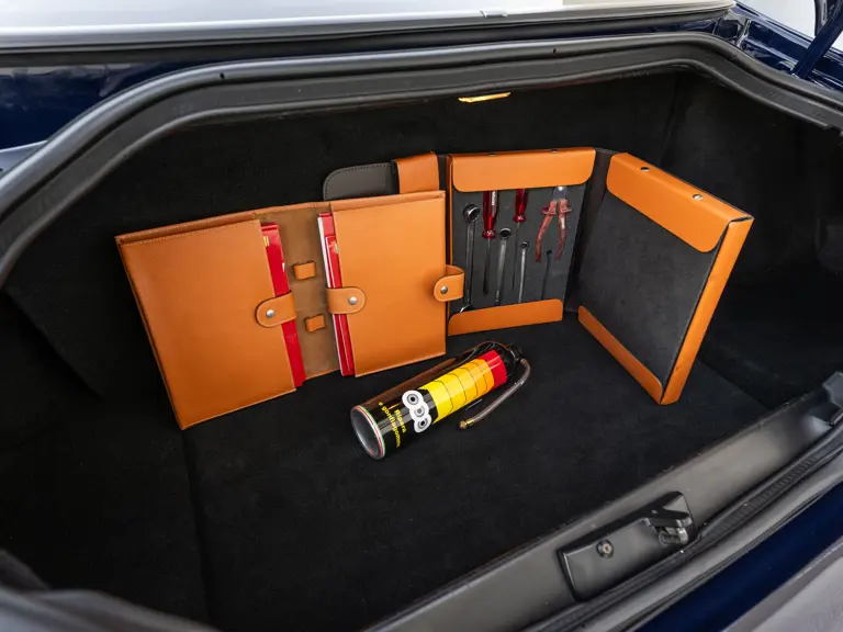 - Finished in distinctive Blu Pozzi with beige leather interior featuring dark blue seat inserts and optional quilted luggage shelf