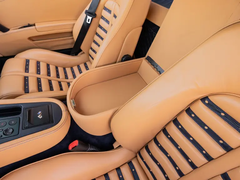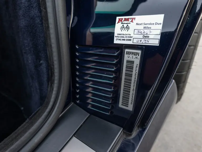 The Ferrari has continued to benefit from conscientious maintenance since the consignor acquired it in January 2022. RMT Motorsports of Yorba Linda, California, replaced the battery in August 2024 and performed an annual service in February 2025, along with installing new Michelin tires, front and rear rubber brake hoses, and a Fabspeed Resonator Bypass X-Pipe for the exhaust system. In October 2025, RMT Motorsports carried out a timing belt service.
