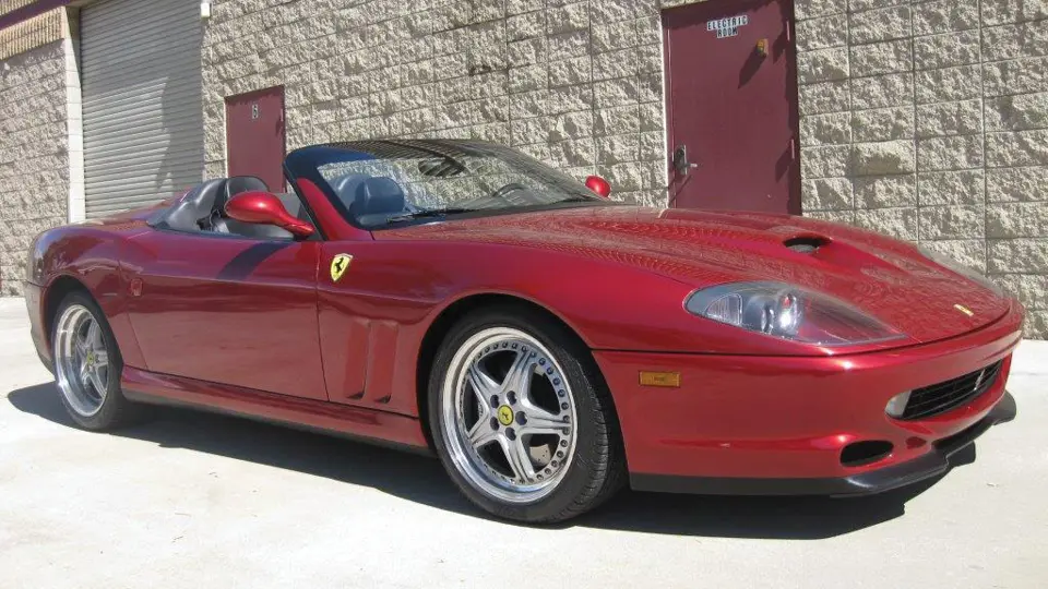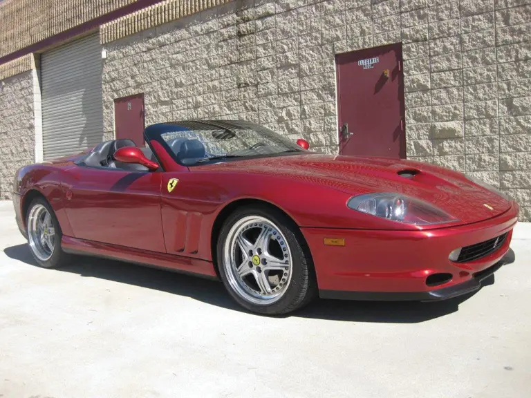 Powered by a 5.5-liter, 485-hp DOHC V-12 engine that is mated to a six-speed manual gearbox in a trans-axle arrangement; this machine has the ability to run nearly 190-mph in this form. This model of Ferrari is also filled with great luxury and conveniences that include air conditioning; power windows, door locks, steering and four-wheel disc brakes. The color tone is Rosso Fiorano with black leather interior and the car is further adorned with factory-spec five-spoke, two-piece alloy wheels, Ferrari crests on the fenders and a Tubi exhaust system.