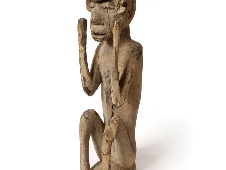 Figure carved in bolsa wood, this effigy statue was stored in the Steve McQueen Hangar for many years.